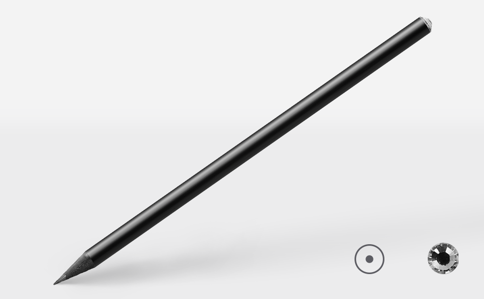 Matt schwarz lackierter Bleistift mit einem Preciosa® Kristall in Black Diamond - helles schwarz.